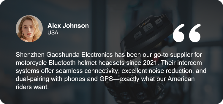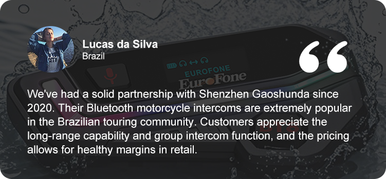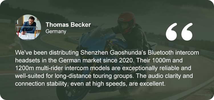 Founded in 2009, our company has established sales departments (domestic and foreign trade) to jointly develop domestic and international markets. Since its founding, we have focused on selling Bluetooth products, particularly motorcycle stereo Bluetooth intercom headsets with ranges of 100m, 500m, 1000m, and 1200m, for two-person and multi-person intercoms, and capable of pairing simultaneously with mobile phones or GPS. As one of our flagship products, our pricing is significantly competitive compared to competitors, fostering a loyal customer base that supports each other and contributing to our continued growth and stable sales.